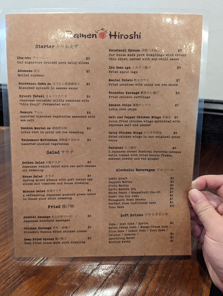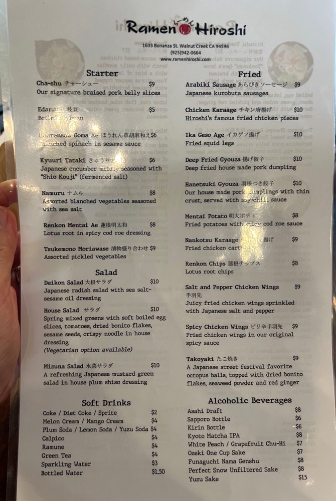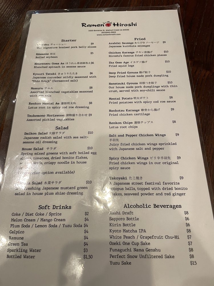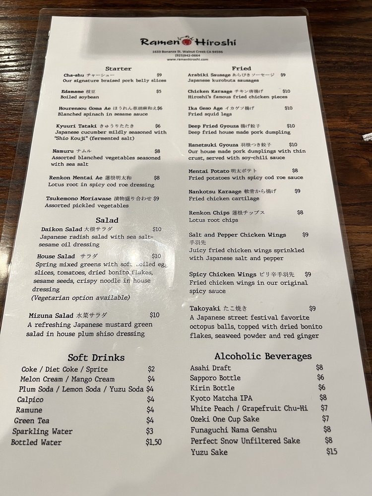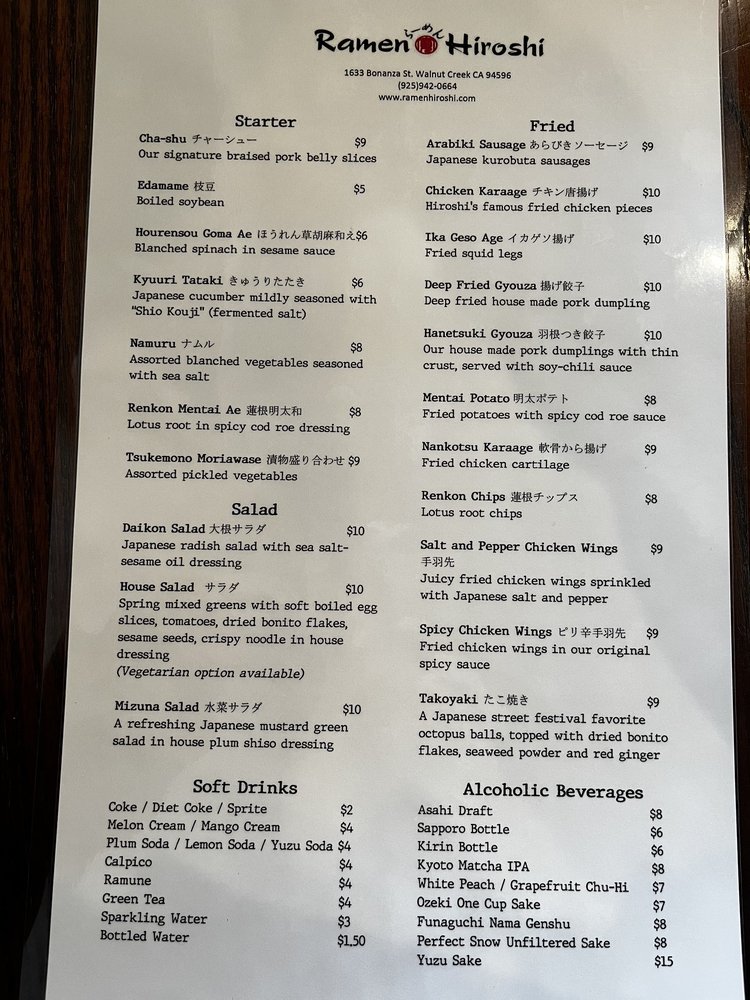 Ramen Hiroshi in Walnut Creek is a hidden gem offering outstanding ramen dishes with a variety of customizable options. The signature Tonkotsu Ramen is a must-try, featuring rich pork bone broth and braised Berkshire pork belly slices. Customers rave about the perfectly cooked pork and flavorful broth. The menu also includes a selection of starters like Chashu and Edamame, as well as refreshing salads like Daikon and Mizuna. The ambience is cozy, and the service is top-notch. While slightly pricier than other ramen spots, the quality and taste make it well worth the cost. The Hakata-style noodles and unique dishes like Yuzu Chicken Ramen add an extra touch of excitement to the dining experience. Overall, Ramen Hiroshi is the go-to spot for authentic and delicious ramen in the East Bay.